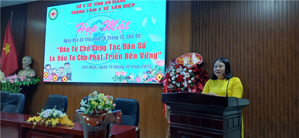 Thạc sĩ quản lý kinh tế Phan Thị Trúc Phương trưởng phòng DS-TTGDSK Trung Tâm Y Tế Tân Hiệp ôn lại truyền thống và những thành tựu đạt được của ngành dân số trong thời gian qua, kết quả thực hiện công tác dân số năm 2025 những thuận lợi và khó khăn thách thức. Chủ đề năm 2025 “Đầu tư cho công tác dân số là đầu tư cho phát triển bền vững’’.